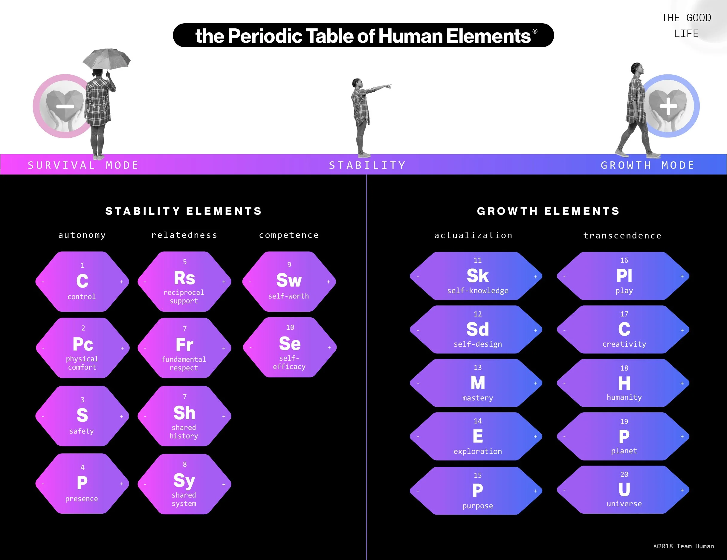 The Periodic Table consists of 20 human elements—building blocks of the deepest human needs and drivers of psychological well-being.